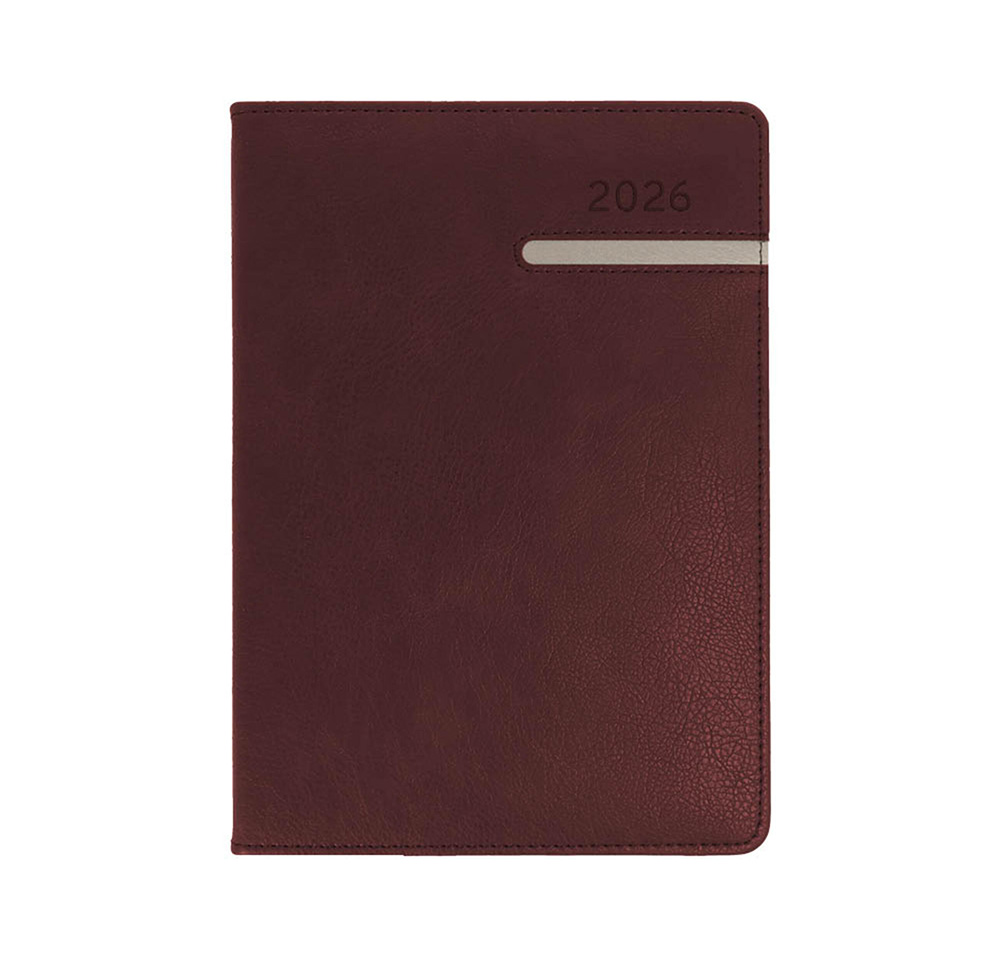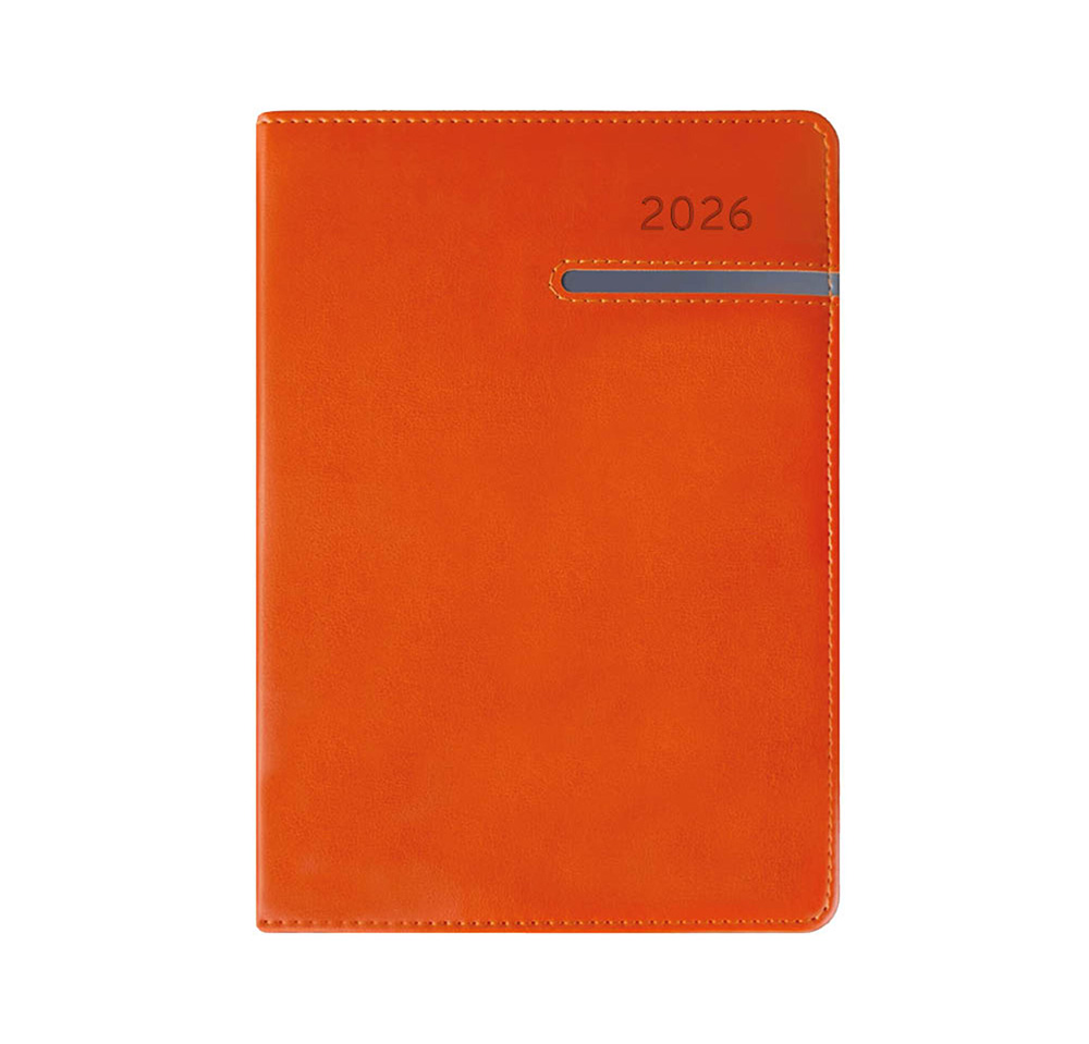 W układzie dziennym lub tygodniowym, drukowany na kremowym papierze.