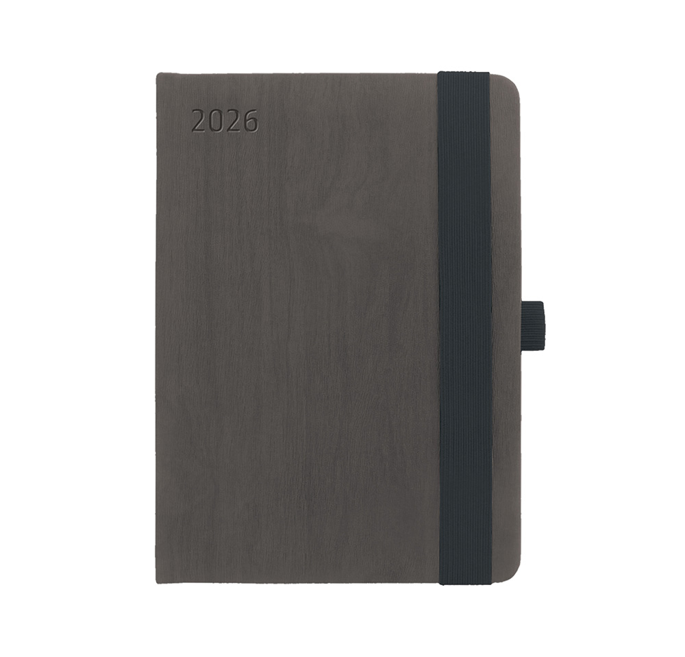 Oprawa z wytłoczonym rokiem. Okleina termoprzebarwialna. Dodatkowe zamknięcie na szeroką gumkę (2cm), gumka na długopis.