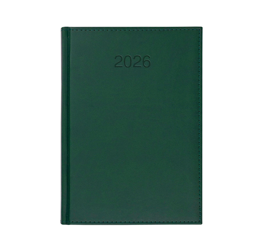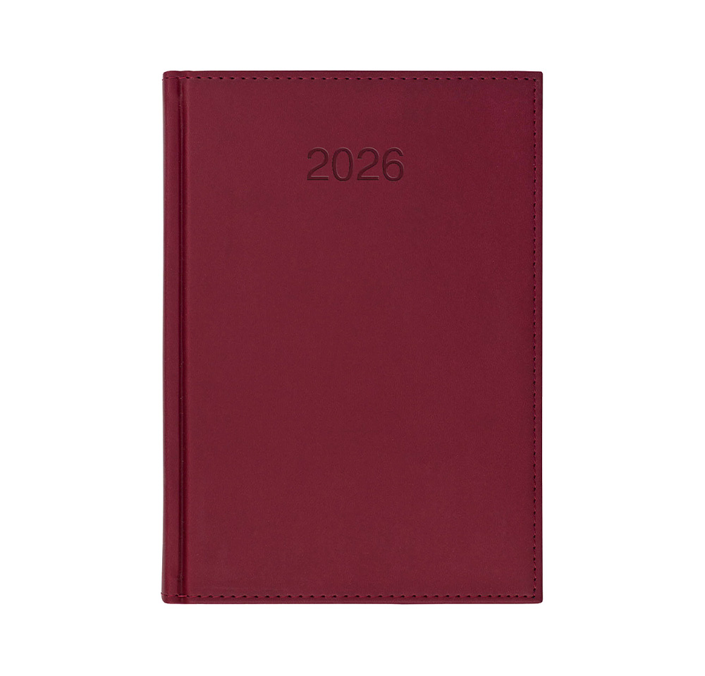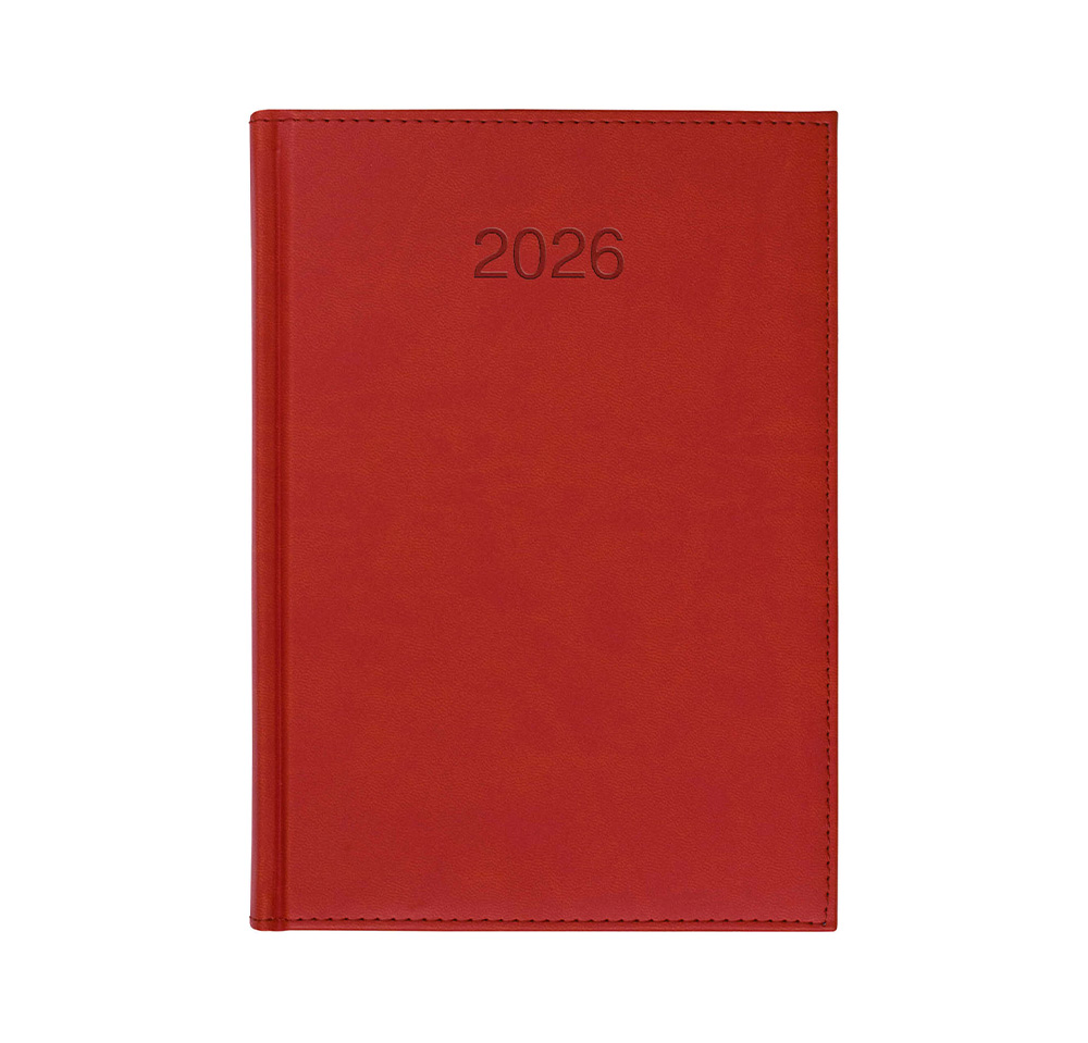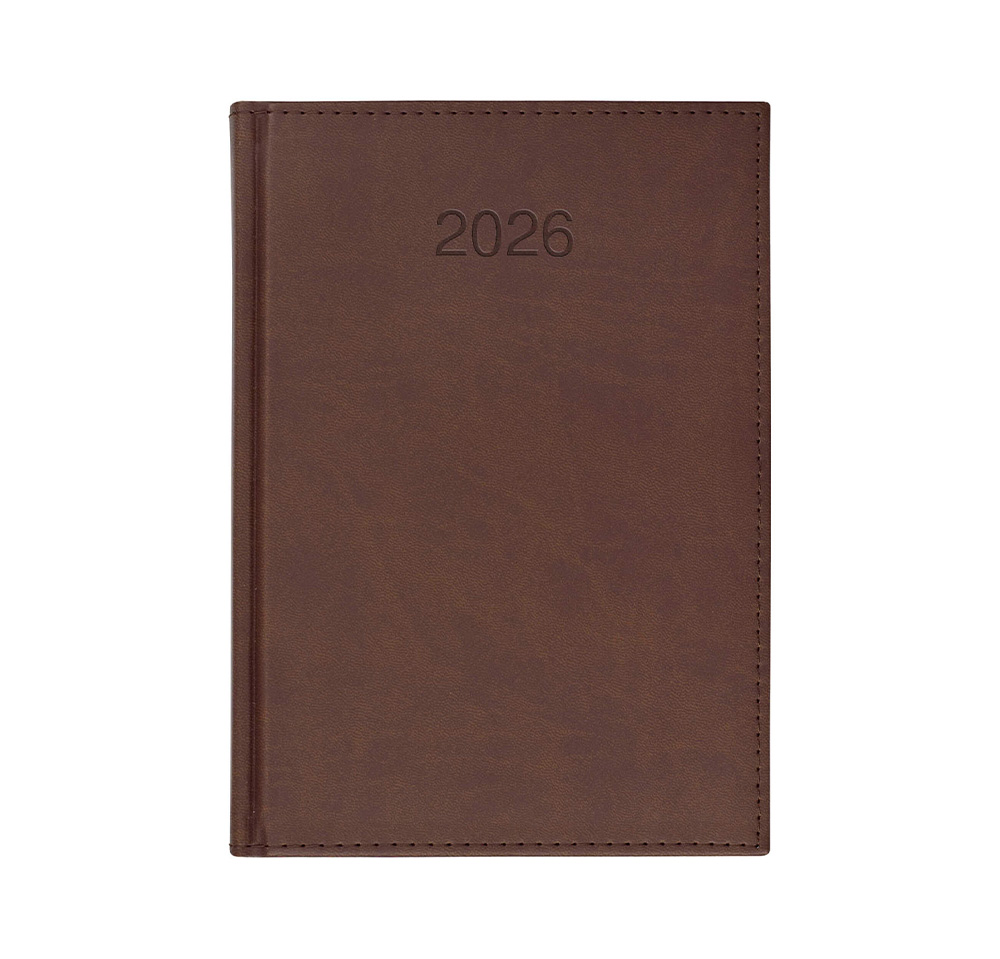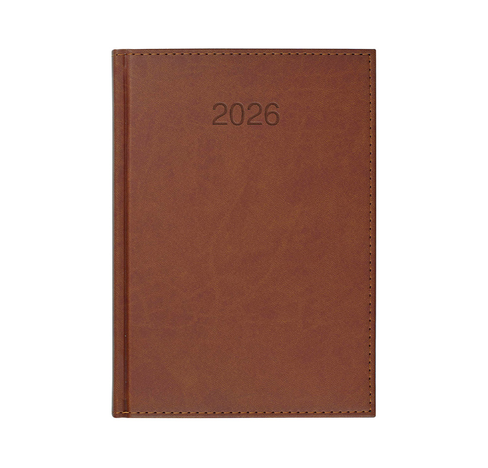 W układzie dziennym lub tygodniowym, drukowany na kremowym papierze.