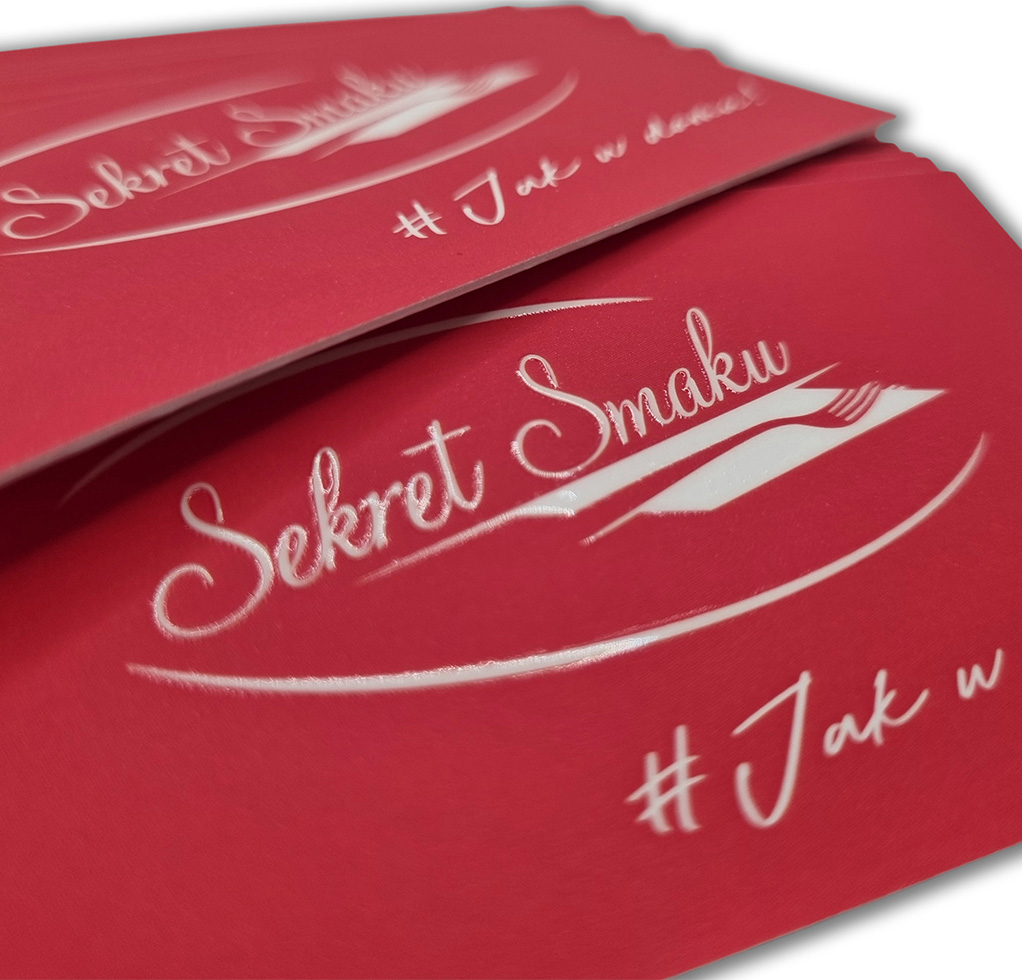 - Uszlachetnienia: folia mat / błysk / soft touch / antiscratch, kaszerowanie, lakier 3D